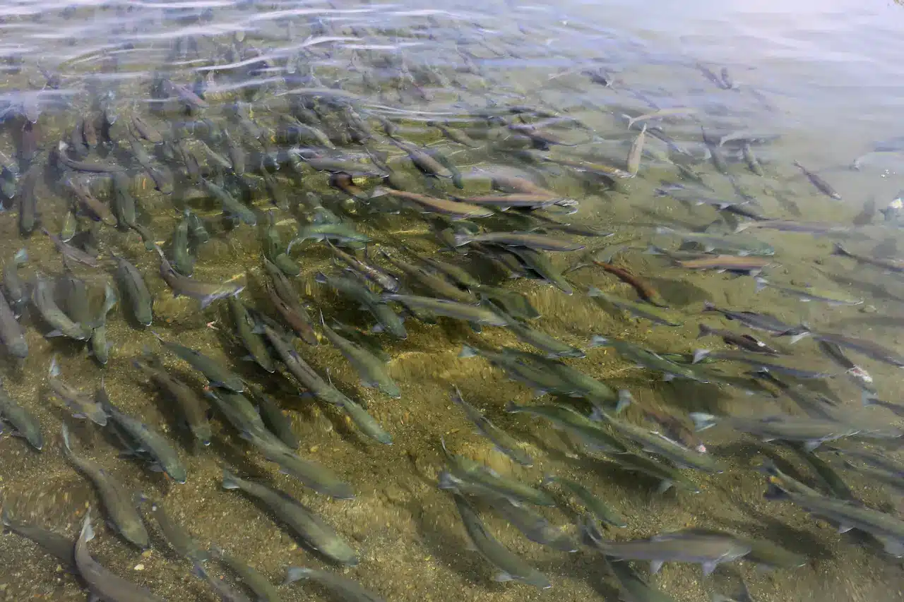 The migration of the salmon is well known. Salmon are born in freshwater rivers and migrate to the sea, where they spend several years, before returning to their birth rivers to reproduce. The return journey is often dangerous, involving a lot of currents and jumping over waterfalls.